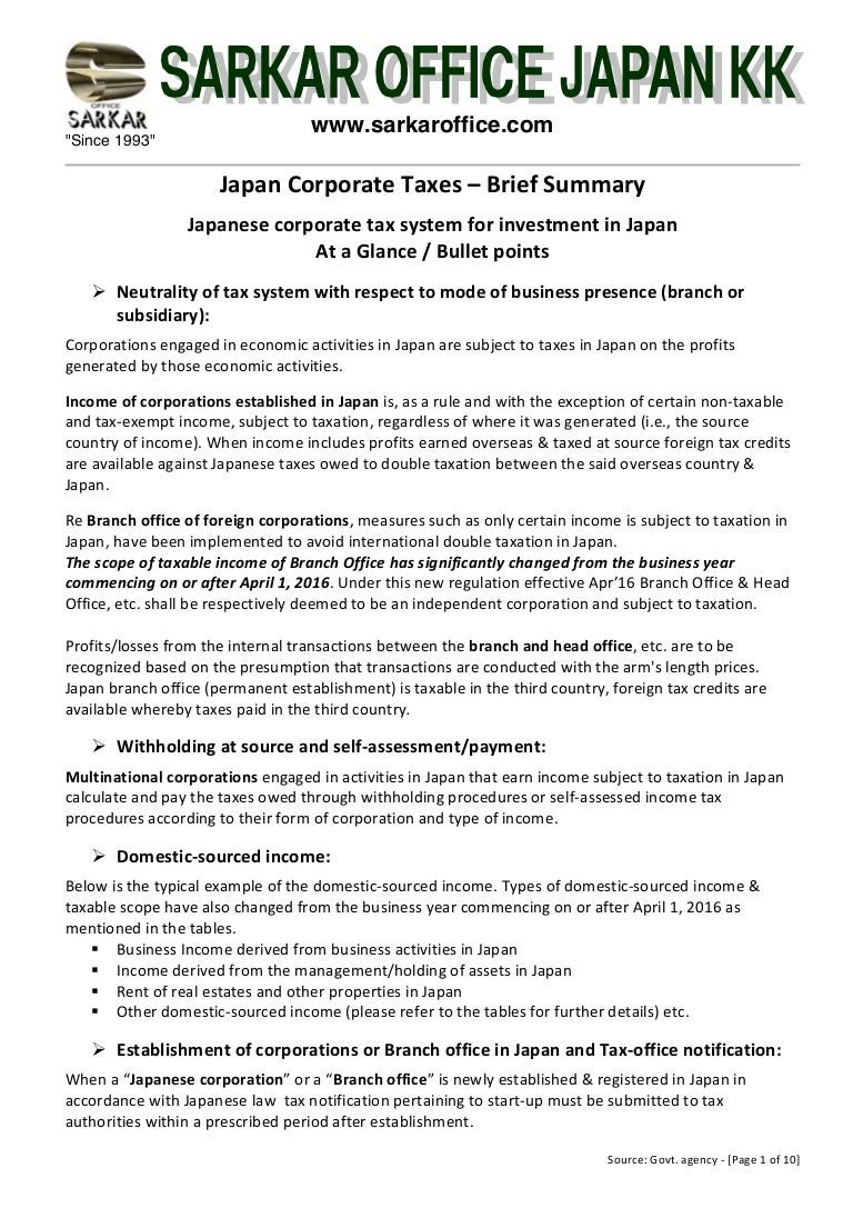 Japanese Corporate Tax At A Glance In Bullet Points